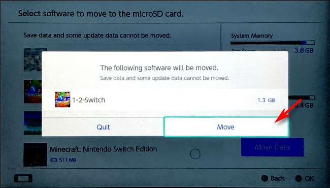 Налаштування системи попросить вас підтвердити, що ви хочете перенести вибрану гру. Виберіть "Перемістити".