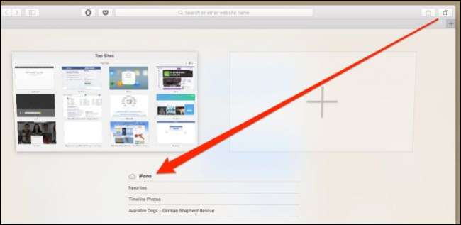 Коли ви хочете відкрити вкладку на своєму Mac, просто натисніть кнопку «Показати всі вкладки» у верхньому правому куті. Якщо у вас на Mac відкриті вкладки, ви побачите їх усі тут, але зверніть увагу, що внизу ви можете побачити вкладки, відкриті на вашому iPhone або iPad.