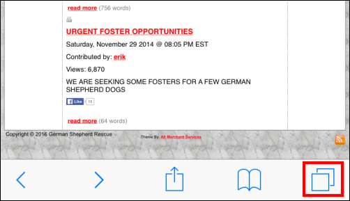 Відкрийте Safari на своєму пристрої iOS і торкніться кнопки «Показати всі вкладки», розташованої в правому нижньому куті.