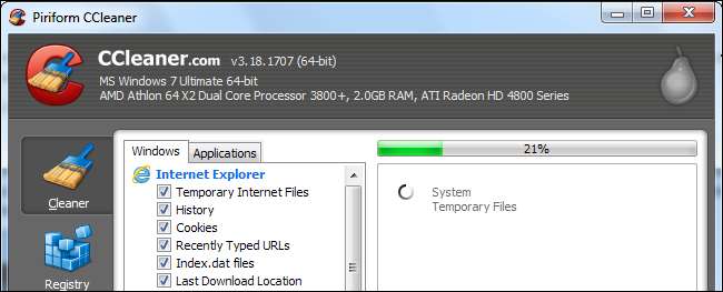 Якщо ви користуєтесь комп’ютером деякий час, можливо, ви можете звільнити місце на диску, запустивши чудовий (і безкоштовний) CCleaner корисність. Він сканує ваш комп’ютер на наявність тимчасових файлів та інших непотрібних системних файлів, які ви можете видалити, потім видаляє їх і звільняє місце. Якщо ви дійсно хочете скористатися засобом очищення реєстру - і ми не рекомендуємо цього, оскільки це вам нічого не допоможе, - ви можете скористатися засобом очищення реєстру, вбудованим у CCleaner.