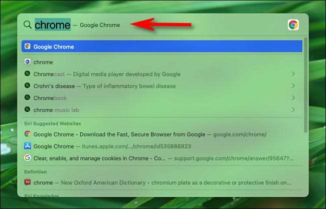 Якщо ви хочете швидко запустити додаток з будь-якої точки вашого Mac, натисніть Command + Space на клавіатурі, або ви можете натиснути значок крихітного збільшувального скла у вашому панелі меню.