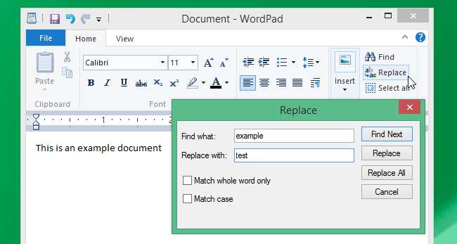 Скопіюйте та вставте текст, який потрібно змінити, у WordPad. Натисніть кнопку Замінити в розділі Редагування на стрічці - це на вкладці Домашня сторінка. Введіть текст, який потрібно замінити, у поле «Знайти що», введіть текст, яким ви хочете його замінити, у полі «Замінити на», а потім натисніть кнопку «Замінити все», щоб замінити його все. Ви можете видалити текст, ввівши його у поле “Знайти що”, а потім залишивши поле “Замінити на” порожнім.