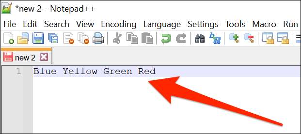 У вікні Notepad ++ відкрийте текстовий файл, який містить список, який ви хочете конвертувати. З іншого боку, ви можете вставити список елементів на лінію.