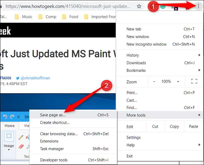 Запустіть Chrome і перейдіть до веб-сторінки, яку потрібно зберегти. Натисніть кнопку меню, а потім натисніть Інші інструменти> Зберегти сторінку як. Крім того, ви можете використовувати Ctrl + S (Command + S у macOS), щоб відкрити діалогове вікно «Зберегти як ...».