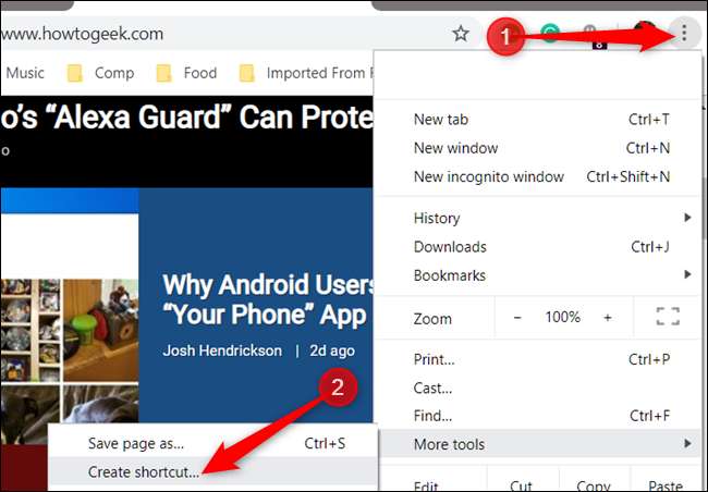 Хоча збереження сторінки для перегляду в автономному режимі чудово підходить для статей, на які ви, можливо, захочете посилатися пізніше, ви також можете зробити швидкі посилання на певні веб-сайти безпосередньо на робочому столі, що краще, коли ви знаходитесь в Інтернеті. Це добре працює для веб-програм, якими ви регулярно користуєтесь - ви навіть можете налаштувати їх на роботу у повному вікні, щоб вони почувалися майже рідними.