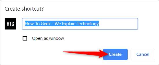 Якщо хочете, дайте ярлику власне ім’я. Ви також можете встановити прапорець “Відкрити як вікно”, щоб відкрити сайт в окремому вікні замість браузера Chrome. Це змусить сторінку відкриватися в новому вікні без вкладок, універсального вікна пошуку та панелі закладок. Це чудово підходить для веб-додатків, оскільки надає їм дуже рідне, схоже на додаток відчуття.