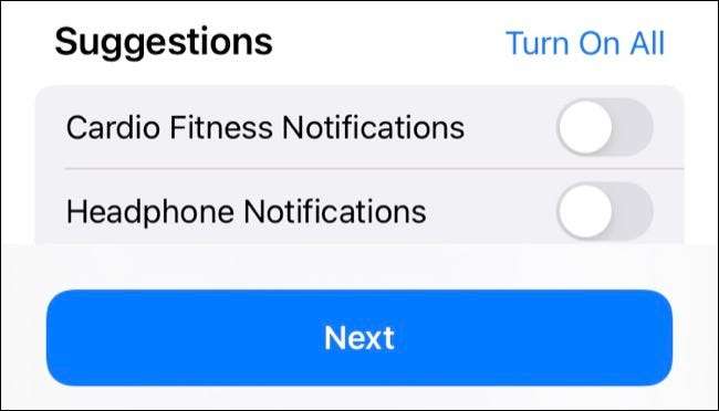 Якщо ви вибрали "Налаштуйте вручну", ви побачите повний список даних про здоров'я, які ви можете поділитися або укорочений список, якщо ви вибрали рекомендації Apple. Натисніть "Переглянути всі" поруч із категорією та перевірте кожен варіант, який ви хочете поділитися.