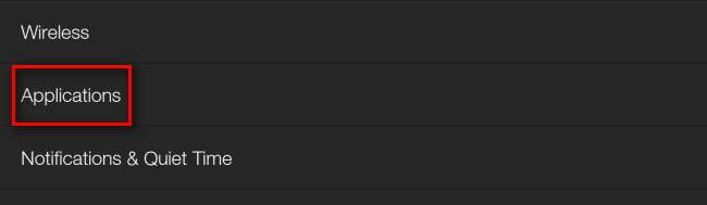 Спочатку проведіть пальцем вниз по верхній навігаційній панелі та натисніть Налаштування. У меню Налаштування знайдіть меню Програми: