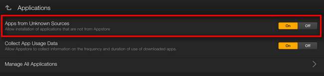 У меню програм, розташованому вгорі, ви знайдете перемикач Невідомі джерела: