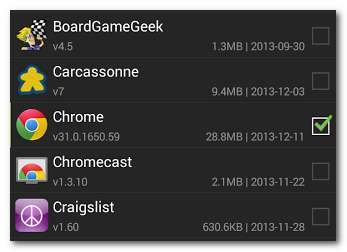 Щоб скористатися цією технікою, встановіть Резервне копіювання та відновлення програми на вашому пристрої. Після встановлення просто запустіть програму резервного копіювання програм і поставте галочку на всіх програмах, які ви хочете зробити на вашому пристрої, щоб перенести їх на ваш Kindle Fire. Натисніть кнопку резервного копіювання внизу.