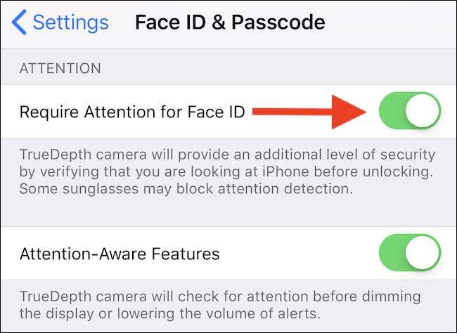 Вимкнення розпізнавання уваги зменшить час, який Face ID потребує для підтвердження вашої особи перед розблокуванням пристрою. Пам’ятайте, що ваш iPhone може бути розблоковано без вашого відома, якщо ви вимкнете цю функцію. Але, якщо переваги швидкості є достатніми, вимкнути це легко.
