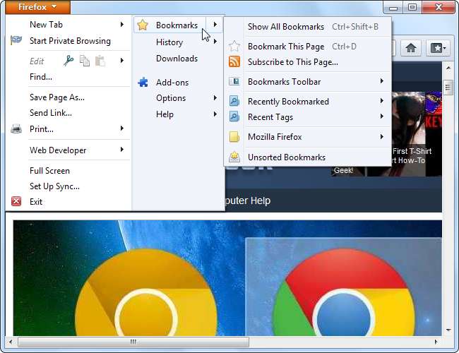 Ви також можете призначити ключові слова закладкам. Спочатку відкрийте вікно бібліотеки закладок, клацнувши Параметри закладок або Показати всі закладки в меню Firefox.