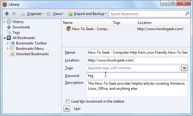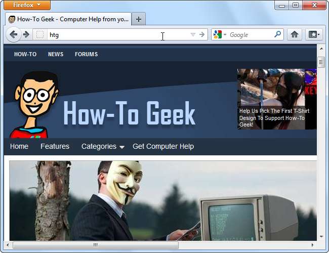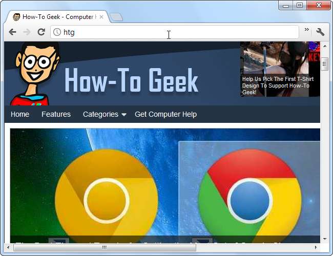Після призначення ключового слова введіть його в адресний рядок, щоб миттєво відкрити закладку. Наприклад, ми можемо набирати текст htg щоб відкрити How-To Geek, якщо ми призначили ключове слово вище.