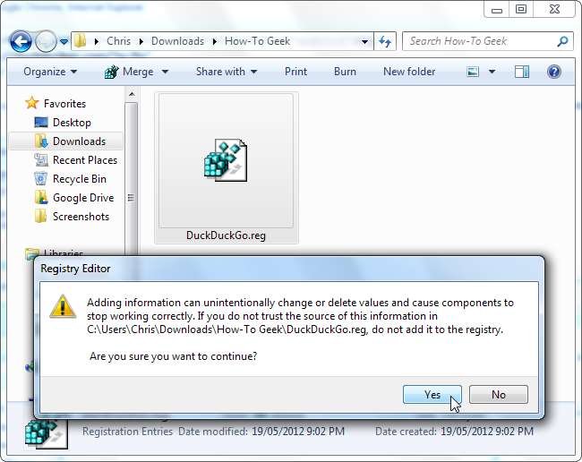 Двічі клацніть файл .reg та натисніть Так, щоб додати його до реєстру.