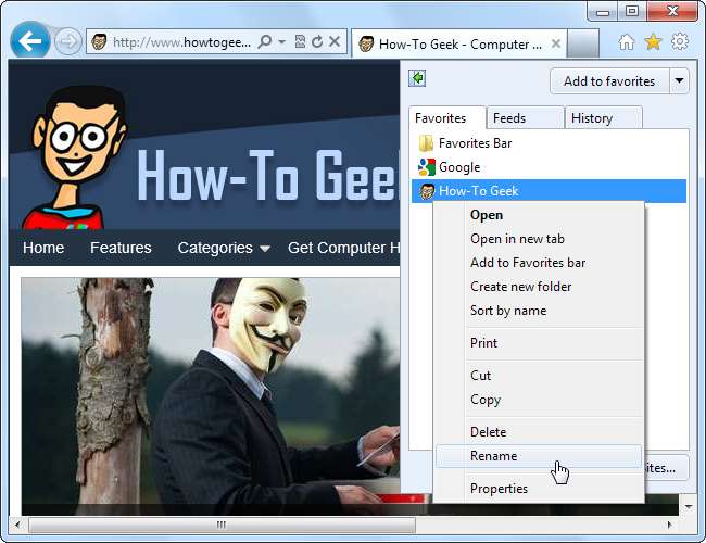 Якщо ви вже зберегли веб-сторінку як улюблену, клацніть її правою кнопкою миші, щоб перейменувати. Ви також можете створити кілька вибраних, які вказують на одну веб-сторінку, кожна з яких має іншу назву.