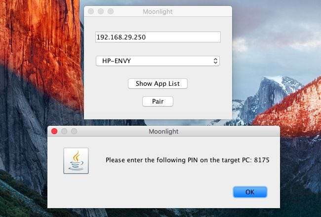 Програма Moonlight дасть вам PIN-код. Введіть його у спливаючому вікні “ЩИТ вимагає підключення”, що з’являється на вашому ПК, і ваші пристрої будуть спарені.