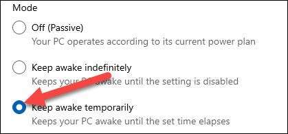 - Тримайте пробудження тимчасово: Ви можете вибрати встановлену довжину часу, скільки часу залишається ПК.