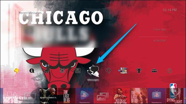 Тепер звернімось до свого PS4. Перейдіть до меню Повідомлення, яке можна знайти на панелі дій.