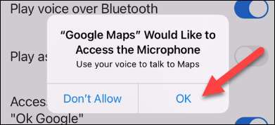 Попадання попросить вас дати доступу до Maps Google до вашого мікрофона. Натисніть "OK", якщо ви згодні.