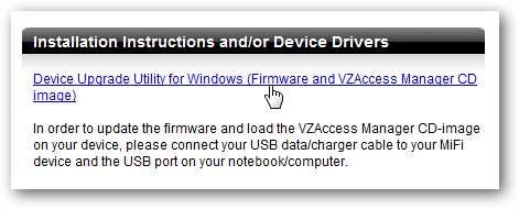 Перше, що вам потрібно буде зробити, це перейти до Сторінка VZAccess Manager і завантажте оновлення мікропрограми для свого пристрою - переконайтеся, що спочатку вибрали правильний пристрій, а потім ви потрапите на сторінку, де його можна завантажити: