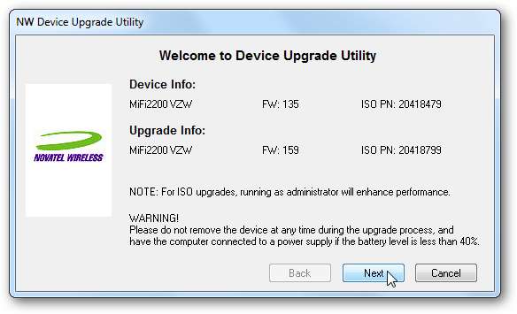 Далі відкрийте завантажену програму оновлення пристрою, яка повинна виявити ваш пристрій. Якщо цього не сталося, можливо, вам доведеться спочатку встановити VZAccess Manager.