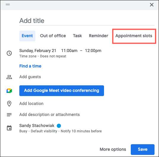 Призначення блоки в Google Calendar ідеально підходять для вчителів і викладачів, які займають робочі години, контролер під час перевірки або оцінки сезону, а хтось, хто зустрічається з іншими людьми часто. Єдине, що вам потрібно налаштувати призначення слотів для себе цей твір або шкільний календар рахунок Google. Так, якщо ваша компанія використовує Gmail Наприклад, ви повинні побачити цю функцію доступною для вас.