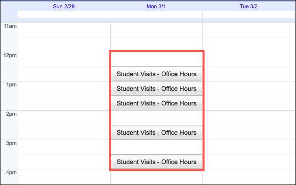 Після того, як хтось резерви одного з ваших призначень слотів, ви будете бачити його як подія в календарі Google. Це показує пліч-о-пліч з початковим призначенням блоку настройки.