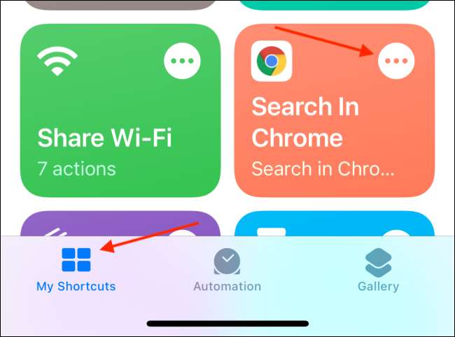 Перейдіть на вкладку "Мій ярлики" та торкніться кнопки меню "Три-точка" з ярлика, яку ви хочете додати до головного екрана.