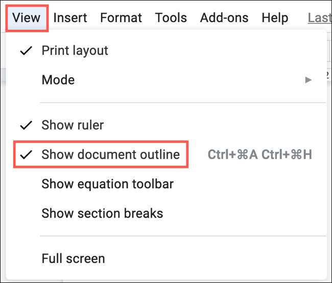 Натисніть кнопку Перегляд & gt; Показувати контур документа з меню, щоб покласти за ним галочку.