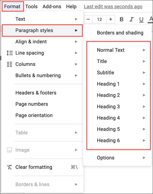 Щоб застосувати назву або заголовок, виберіть текст, а потім клацніть формат & gt; Стилі абзацу з меню або використовуйте розкривний список "стилів" з панелі інструментів.