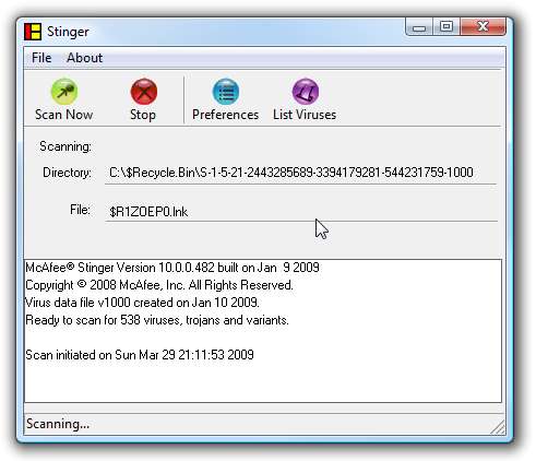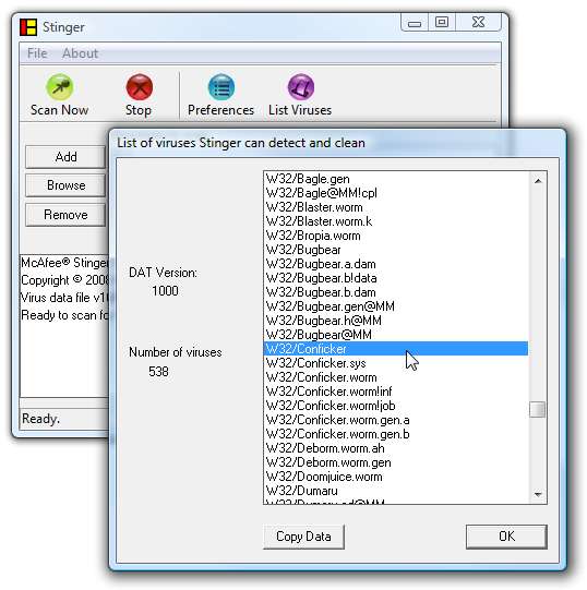 Альтернативним інструментом є інструмент McAfee Stinger, який є безкоштовним інструментом, який видаляє з вашого комп’ютера лише найгірші віруси. Ви можете переконатися, що Stinger може усунути поточну проблему вірусу, перевіривши діалогове вікно Список вірусів ... переконайтесь, що у вас є остання версія Stinger, перш ніж використовувати його.