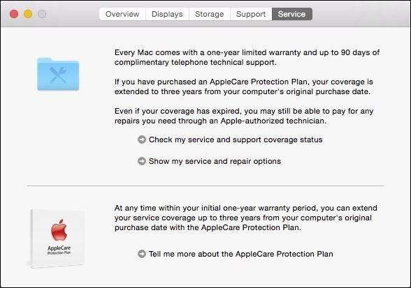 Нарешті, якщо у вас виникли проблеми з апаратним забезпеченням, ви можете перевірити стан покриття, варіанти ремонту та дізнатися більше про AppleCare на вкладці «Сервіс».