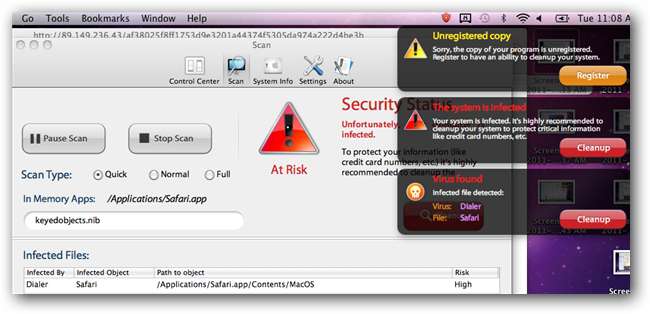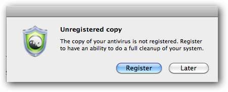 Так само, як підроблені антивірусні програми в Windows, якщо ви натиснете кнопку очищення або одне із сповіщень, вам скажуть, що ваше програмне забезпечення не зареєстроване і за нього потрібно платити.