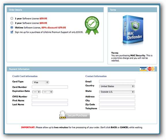 Вірус, про який йде мова, насправді є фальшивим антивірусом та трояном, який має кілька різних назв. Він може представляти себе як Центр безпеки Apple, Apple Web Security, Mac Defender, Mac Protector та, можливо, багато інших імен.