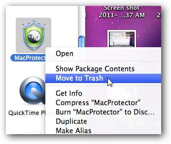 Закрийте системні налаштування та поверніться до папки Програми. Знайдіть встановлену програму MacProtector та перетягніть її у кошик, клацніть правою кнопкою миші та перейдіть до кошика, або перетягніть до улюбленої програми zapper.