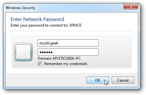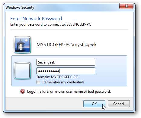 Якщо обидві машини не є частиною однієї домашньої групи, можливо, вам буде запропоновано ввести ім’я користувача та пароль. Обов’язково встановіть прапорець біля Запам’ятай мої посвідчення якщо ви не хочете входити щоразу, щоб отримати до нього доступ.