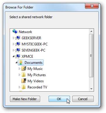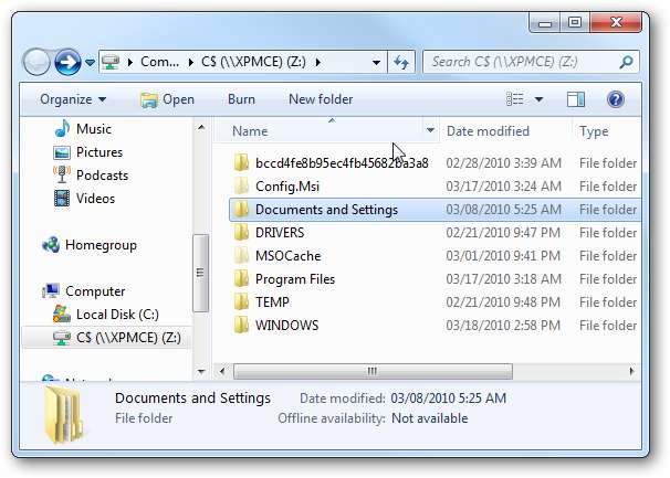 На цьому етапі ви повинні мати доступ до спільних папок на машині XP, але не до всього диска. Тут ми переглядаємо машину XP Media Center Edition.