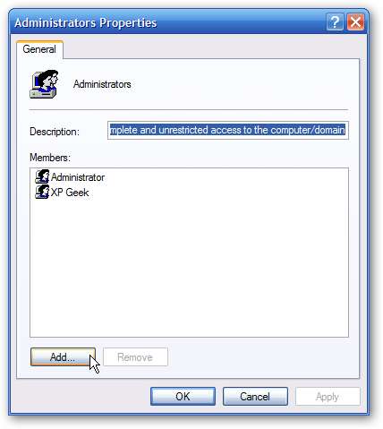 Натисніть кнопку Додати у вікні Властивості адміністратора.