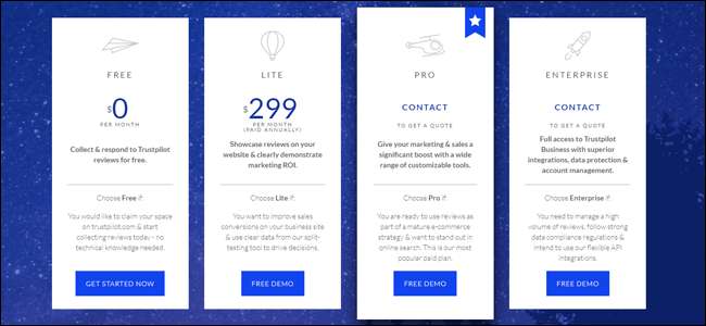 Облікові записи можна створювати на TrustPilot незалежно від того, хоче їх бізнес чи ні, але лише ті, хто платить, видаляють (можливо, конкуруючі) оголошення зі свого профілю компанії, а безкоштовні облікові записи отримують лише обмежену кількість запрошень на огляд, як наведені вище. Більш складні інструменти для ще дорожчих та недорогих облікових записів включають можливість персоналізувати запрошення до огляду, генерувати бізнес-посилання, вбудовувати форму огляду TrustPilot на веб-сайті постачальника, "позначати" відгуки для більш конкретної уваги з боку TrustPilot.