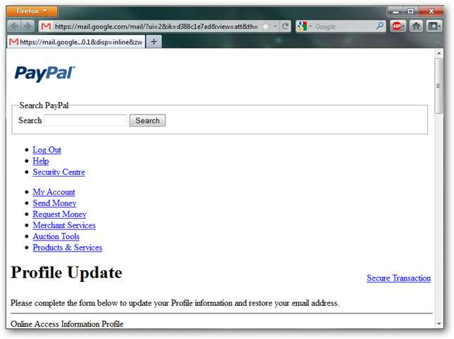 Коли я відкриваю вкладення, ви відразу бачите, що макет неправильний, оскільки в ньому відсутня інформація про стиль. Знову ж таки, чому PayPal надсилає електронною поштою HTML-форму, коли вони просто можуть дати вам посилання на своєму сайті?