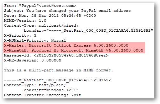 Переглядаючи інформацію заголовка оригінального повідомлення, ви можете побачити, що це повідомлення було складено за допомогою Outlook Express 6. Я сумніваюся, що в PayPal є хтось із співробітників, який надсилає кожне з цих повідомлень вручну через застарілий поштовий клієнт.