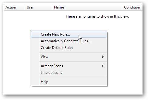 Оскільки ви вперше звертаєтесь до AppLocker, перелічених правил не буде. Клацніть правою кнопкою миші та виберіть Створити нове правило ...