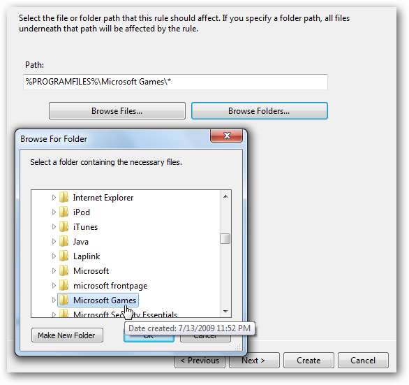 Клацніть на Огляд папок і виберіть папку Microsoft Games.
