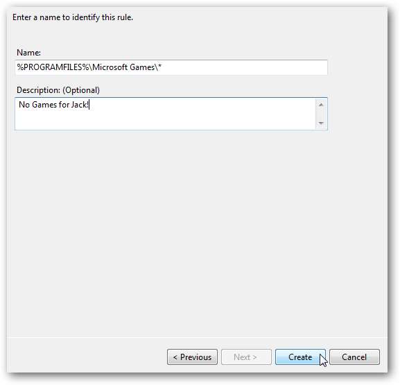 Тут ви можете додати опис до правила, щоб ви могли відстежувати їх, якщо є кілька налаштованих правил. Коли все виглядає, клацніть правою кнопкою миші на Створити.