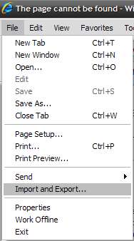 Відкрийте Internet Explorer і натисніть Імпорт та експорт файлів ...