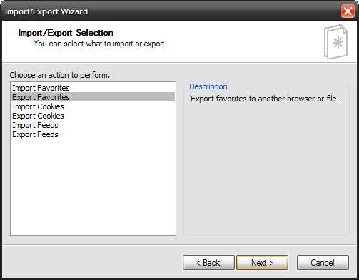 Це все! Тепер, коли ви переходите на нову машину, просто запустіть Майстер імпорту експорту та виберіть «Імпортувати вибране», а потім наведіть курсор на збережене місце.