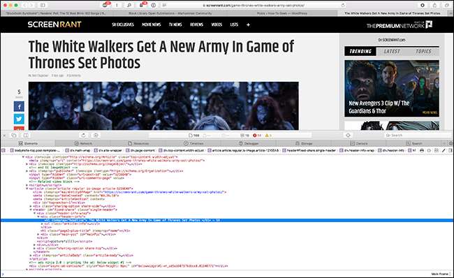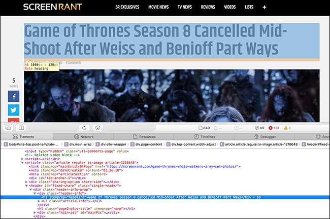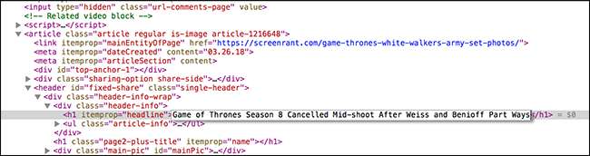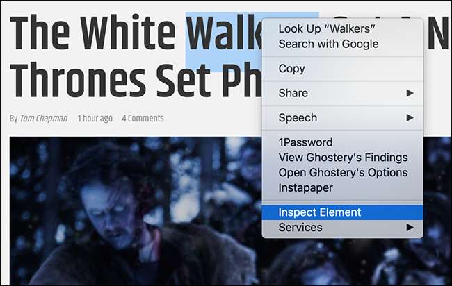 Потім клацніть правою кнопкою миші заголовок і виберіть опцію "Перевірити елемент" (у Chrome це просто "Перевірити").