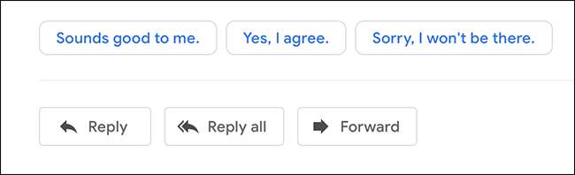Також є функція розумної відповіді, яка раніше була доступна лише на мобільному телефоні. Під електронними листами ви побачите такі кнопки: