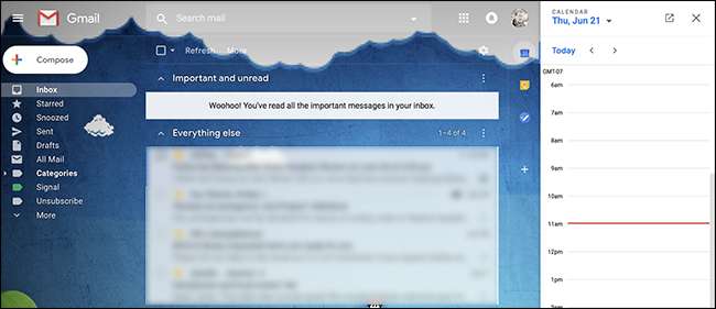 Це, мабуть, найпомітніша зміна в новому Gmail: бічна панель. За замовчуванням Календар, Зберігати та Завдання заповнюють область, але ви можете додати сторонні служби, такі як Trello.