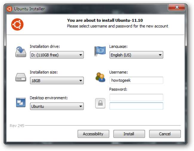 Оскільки воно базується на тому самому програмному забезпеченні, ви можете очікувати дуже подібного досвіду роботи з WUBI, крім завантаження ISO, записування його на компакт-диск та запуску інсталятора Windows із цього диска.